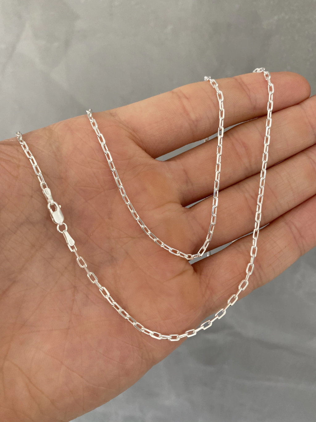 Corrente cadeado com 2 milímetros de espessura, com peso de 6.4 gramas, 70 centímetros de comprimento.
