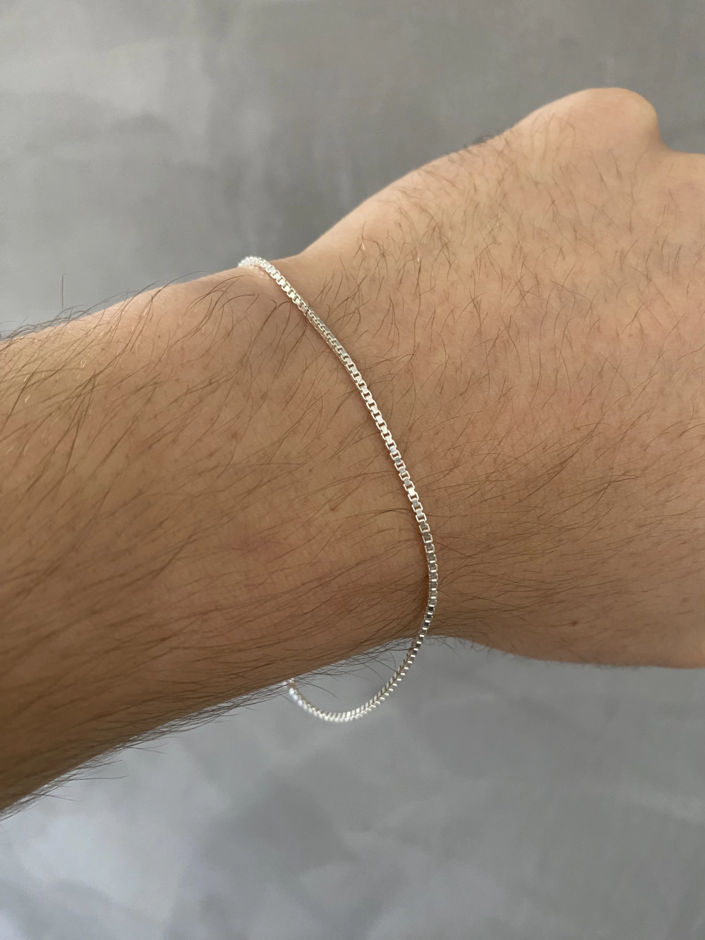 Pulseira veneziana com 1.2 milímetros de espessura, com peso de 1.7 gramas, e com 20 centímetros de comprimento.